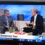 He demonstrated how some of the toys on this year’s list contain common toy safety hazards: projectiles such as dart guns and sling shots that may cause eye/facial injuries and small removable parts that are choking hazards for kids 3 and younger. Another common hazard is toxic toys that contain lead, cadmium, phthalates or substances that could cause allergies.