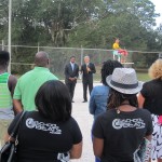 Mayor Alvin Brown thanked Wayne Hogan at an end-of-summer celebration for JaxParks’ Summer Night Lights (SNL) for donating $35,000 to this successful crime prevention initiative for youths that operates in select parks each summer.