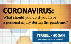 While much of life is on hold for the coronavirus, your personal injury claim can still move forward. The attorneys at Terrell Hogan have the tools, resources, and technology to assist you remotely. We offer free, completely confidential telephone consultations. You can initiate your personal injury claim without having to visit our office.