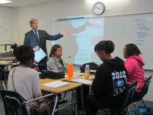 Attorney Wayne Hogan, president of the Terrell Hogan law firm, visited students from Mary Chowenhill’s American Government class to lead an interactive discussion and role playing exercise about the Bills of Rights.